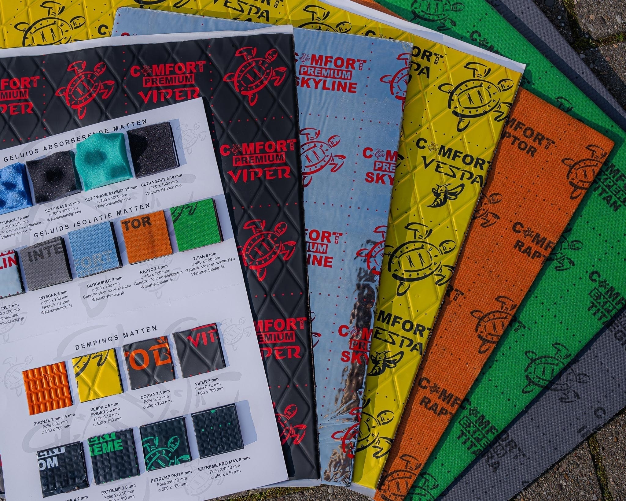 Geavanceerde 1-laags technologie die trillingen dempt én luchtgeluid isoleert, met minder gewicht en een strakke afwerking.