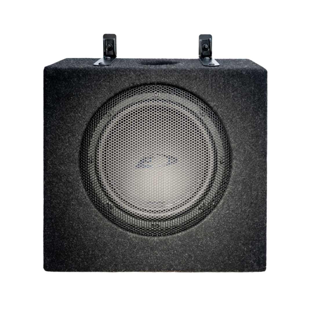 - 180 Watt subwoofer met houten behuizing voor montage onder de passagiersstoel