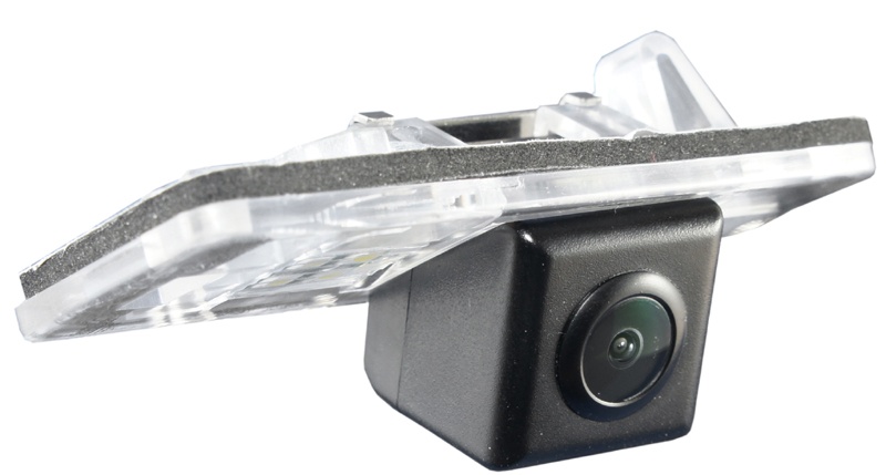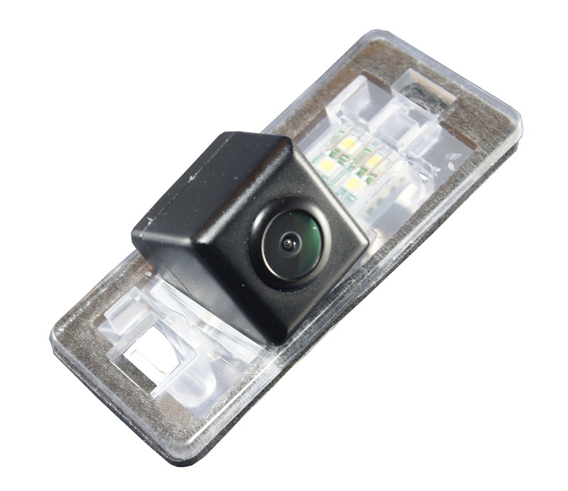 Voertuigspecifieke vervangende kentekenplaatverlichting met camera, afstandlijnen en warmwitte LED 3000K. Geschikt voor Audi TT en VW Sharan 2013.