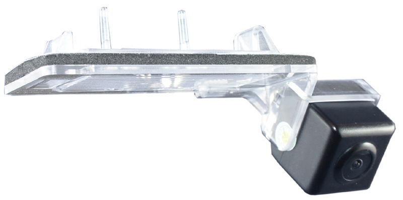 Voertuigspecifiek kentekenplaatverlichtingsglas met camera en afstandslijnen. Ter vervanging van het originele verlichtingsglas. Geschikt voor Audi A4 en Skoda Octavia II vanaf 2011.