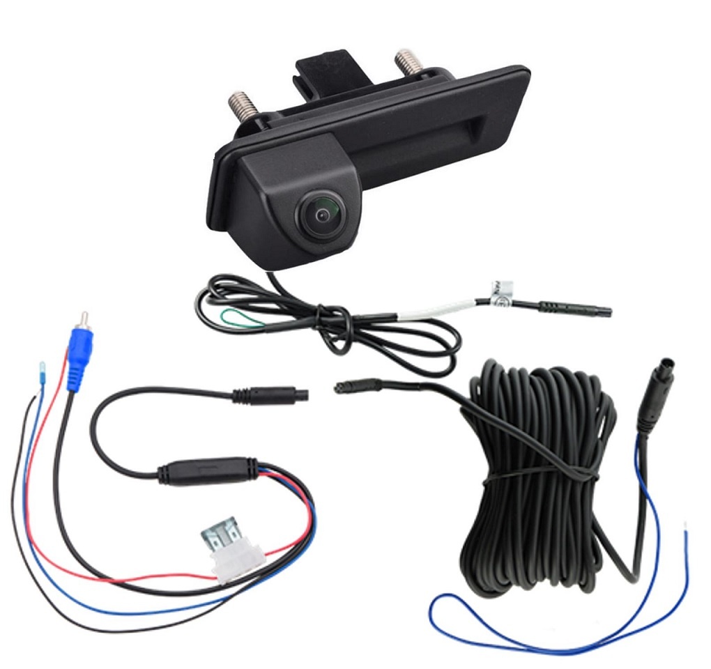Voertuigspecifieke vervangende achterklep-ontgrendelingshendel met geïntegreerde AHD-camera met uitschakelbare afstandslijnen. Geschikt voor veel Audi, Skoda en VW met bouwjaar 2004 tot 2018 (zie lange artikelbeschrijving).