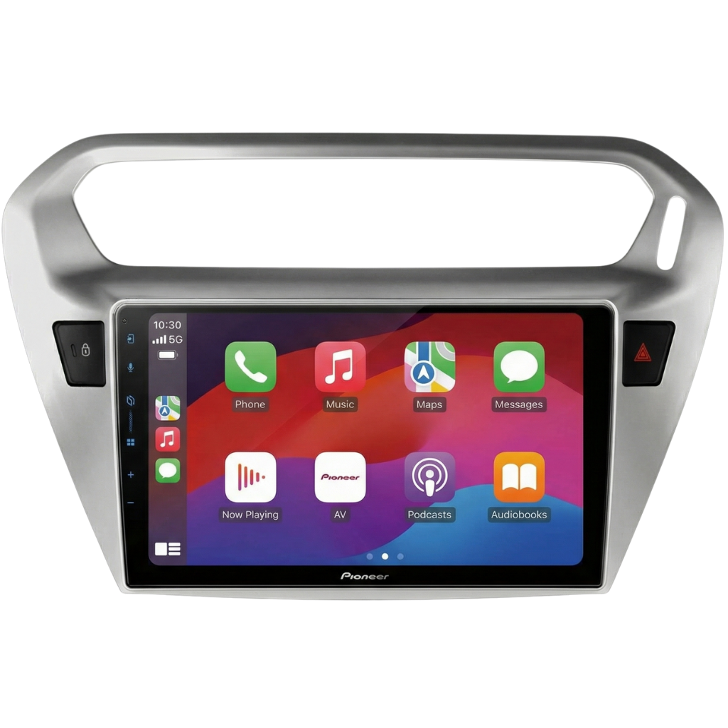 Complete installatiekit, bestaande uit het Pioneer SPH-PF97BT Multimedia Systeem en een voertuigspecifiek 9" Montageframe in de kleur zilver, geschikt voor de Citroën C-Elysée ('12-'17), inclusief 40-pins FAKRA-aansluiting. Let op: Modificaties zijn noodzakelijk voor installatie.