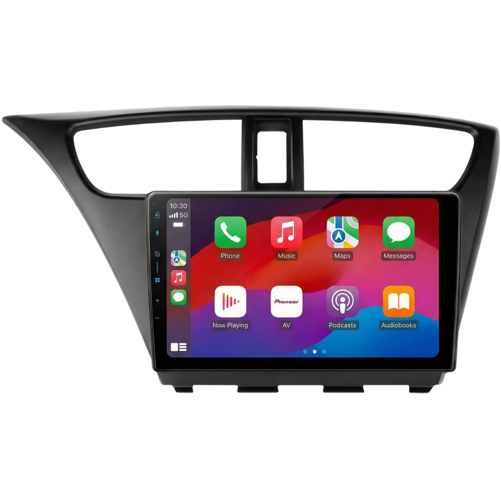 Complete installatiekit, bestaande uit het 9" Pioneer SPH-PF97BT Multimedia Systeem en een voertuigspecifiek 9" Montageframe voor de Honda Civic ('12-'17), inclusief bekabeling en stuurwielinterface.