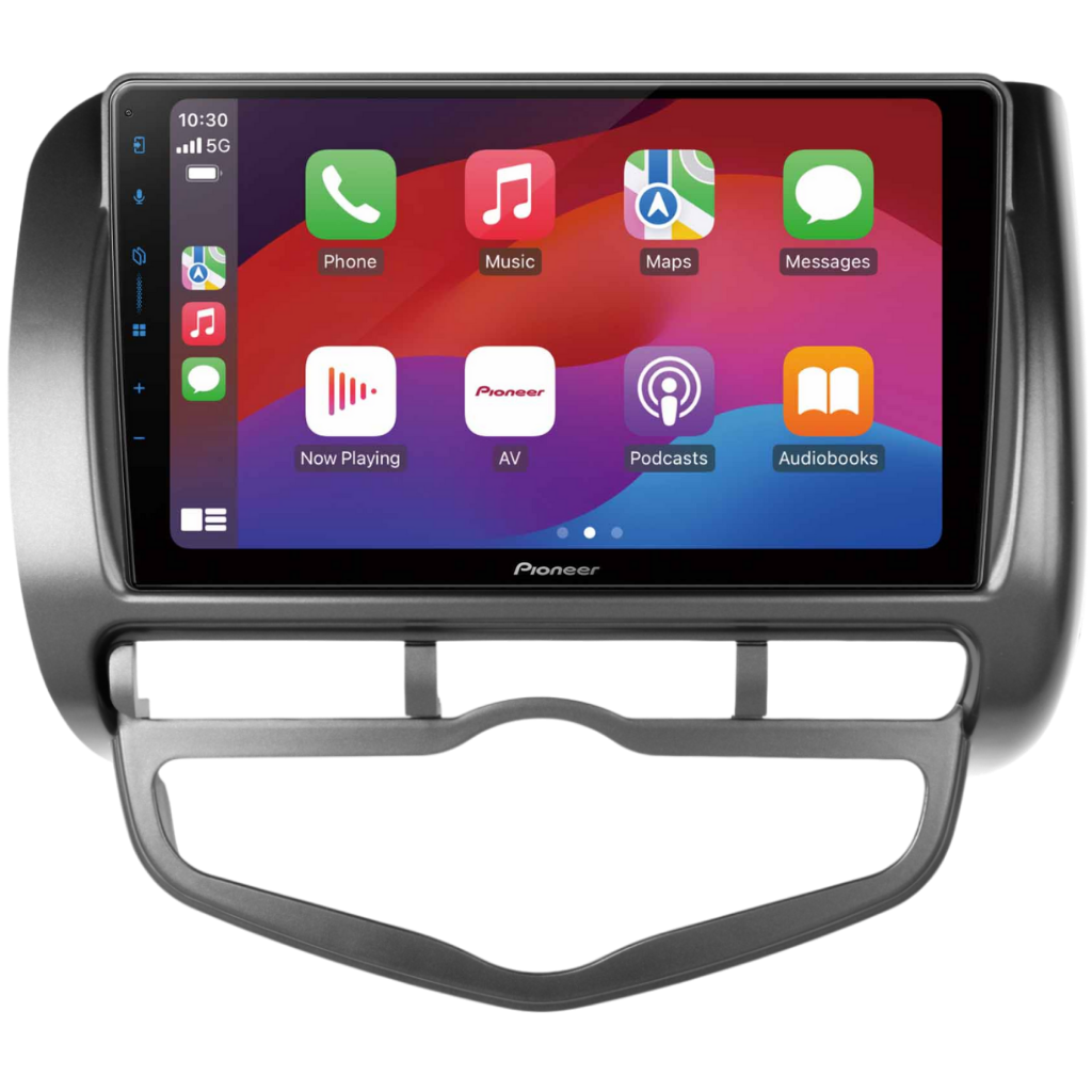 Pioneer SPH-F97BT 9" Multimedia Systeem voor Honda Jazz (2001–2008), automatische airco, inclusief autospecifieke bekabeling en stuurwielinterface.