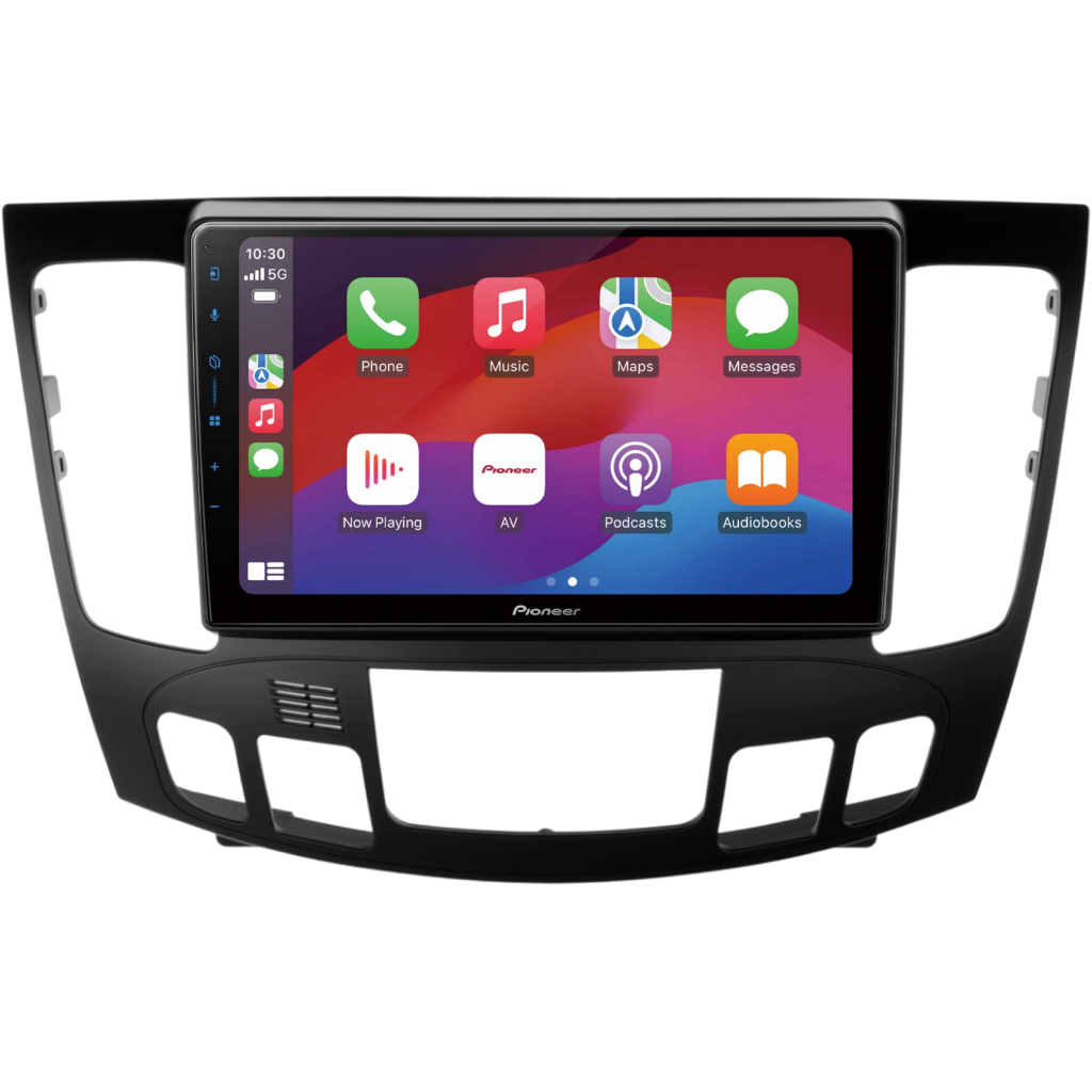 Pioneer SPH-F97BT 9" Multimedia Systeem voor Hyundai Sonata (2008–2010) met automatische airco, inclusief autospecifieke bekabeling en stuurwielinterface.