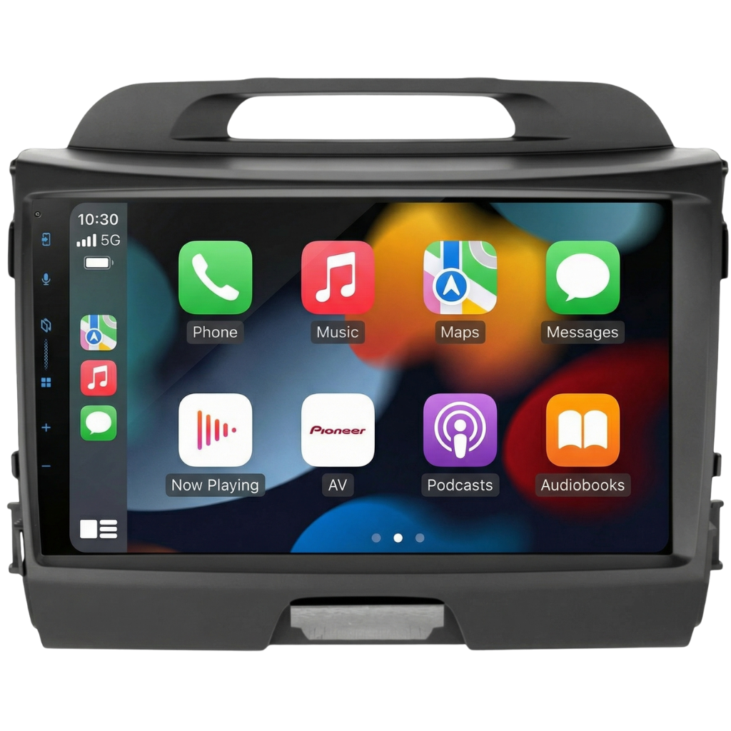 Complete installatiekit, bestaande uit het Pioneer SPH-PF97BT Multimedia Systeem en een voertuigspecifiek 9" Montageframe (Antraciet Grijs) voor de Kia Sportage ('10-'16). De kit wordt geleverd inclusief bekabeling, stuurwielinterface, en 24-Pins + 18-Pins connector.