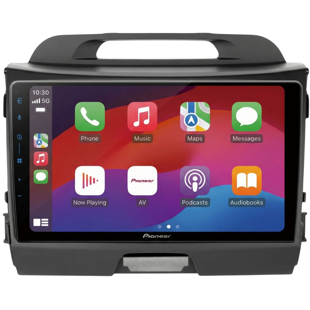 Complete installatiekit met het Pioneer SPH-PF97BT Multimedia Systeem en een voertuigspecifiek 9'' Multimedia Montageframe in Antraciet Grijs, inclusief bekabeling en stuurwielinterface, geschikt voor de Kia Sportage ('10-'16).