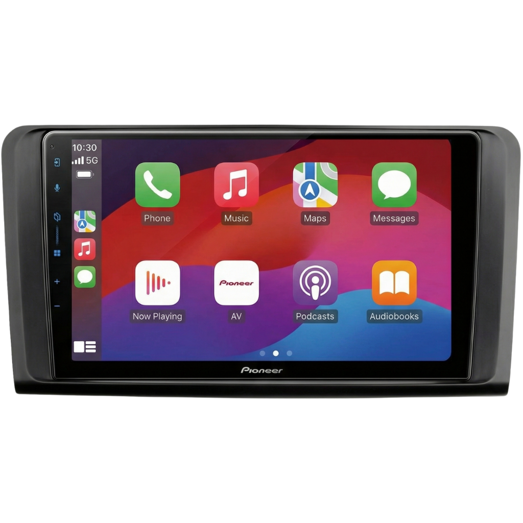 Complete installatiekit, bestaande uit het Pioneer SPH-PF97BT Multimedia Systeem en een voertuigspecifiek 9" Montageframe in Mat Zwart, inclusief bekabeling en stuurwielinterface, geschikt voor de Mercedes ML (W164) ('06-'12) en GL ('06-'12).
