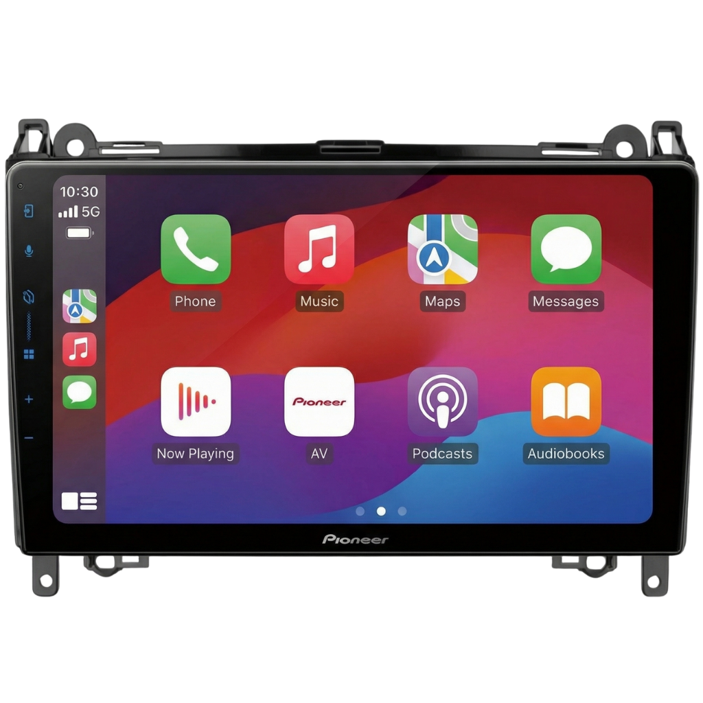 Complete installatiekit bestaande uit het Pioneer SPH-PF97BT Multimedia Systeem en een voertuigspecifiek 9'' Montageframe in Glanzend Zwart, inclusief bekabeling en stuurwielinterface, geschikt voor de Mercedes Vito (W447) ('14-'19) / Vito ('19-).