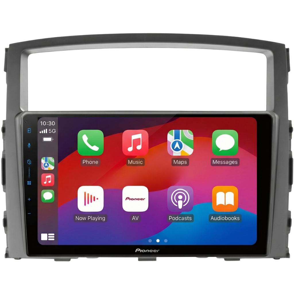 Complete 9'' installatiekit, bestaande uit het Pioneer SPH-PF97BT Multimedia Systeem en een voertuigspecifiek 9" Montageframe (Zwart), inclusief bekabeling en Stuurwielinterface, geschikt voor de Mitsubishi Montero ('07-) modellen met origineel MMCS-scherm en RockFord Fosgate-versterker.