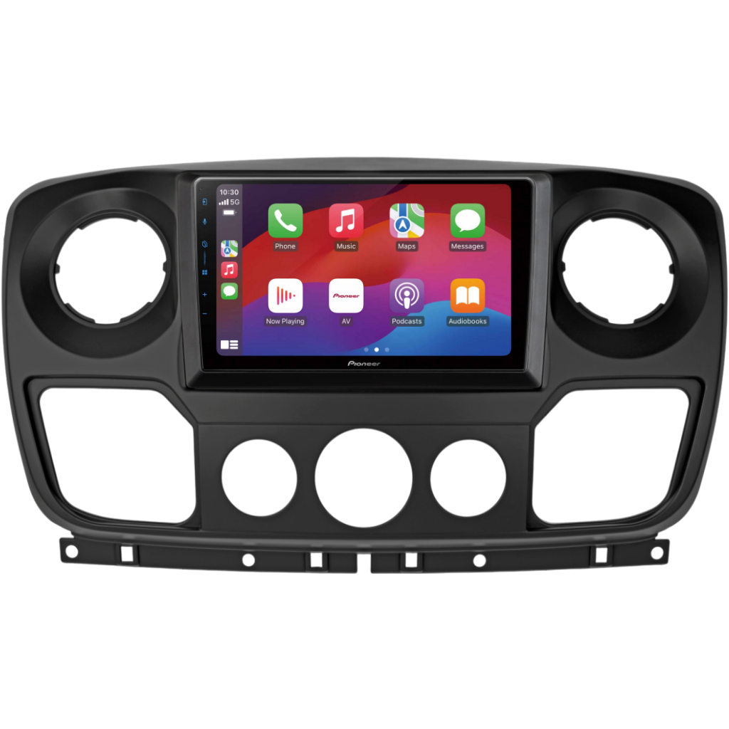 Complete installatiekit, bestaande uit het 9" Pioneer SPH-PF97BT Multimedia Systeem en een voertuigspecifiek 9" Montageframe in Zwart, inclusief bekabeling en stuurwielinterface voor Opel, Nissan, en Renault modellen (Master III / NV400 / Movano B, bouwjaar '10-'20).
