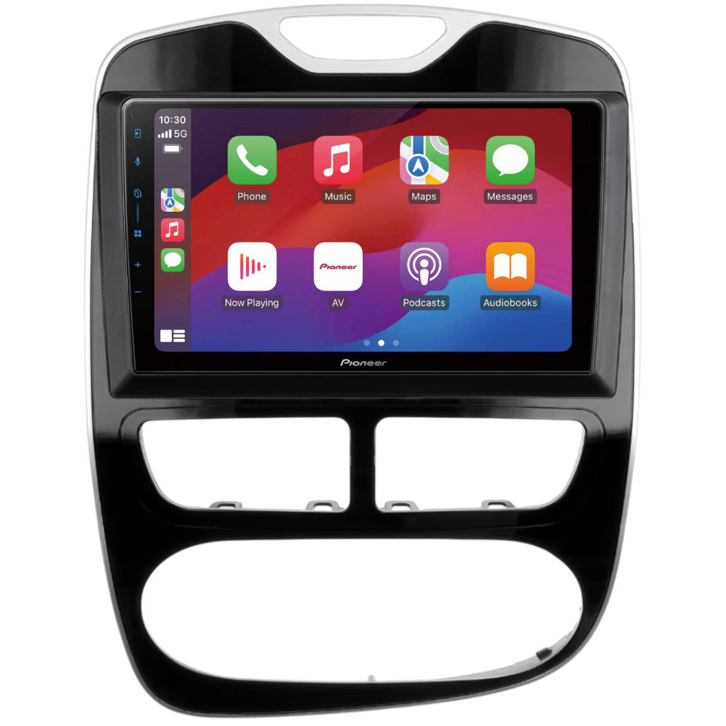 Complete installatiekit bestaande uit het 9'' Pioneer SPH-PF97BT Multimedia Systeem en een voertuigspecifiek 9'' Montageframe in de kleur Zwart, inclusief bekabeling en stuurwielinterface, geschikt voor de Renault Clio ('13-'15) Automaat.