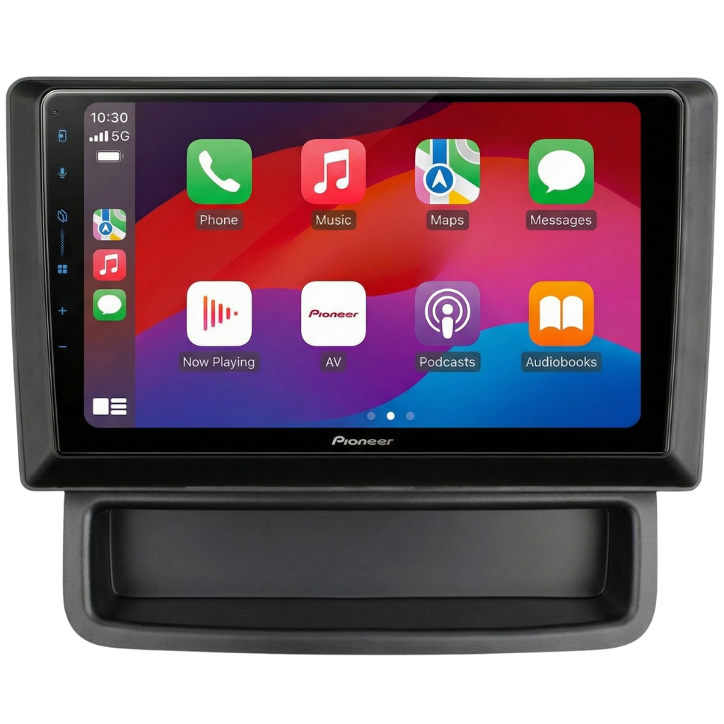 Complete installatiekit bestaande uit het Pioneer SPH-PF97BT Multimedia Systeem en een voertuigspecifiek 9'' Montageframe, geschikt voor de Opel Vivaro, Renault Trafic II en Nissan Primastar modellen van 2011 tot 2014, inclusief bekabeling en stuurwielinterface.