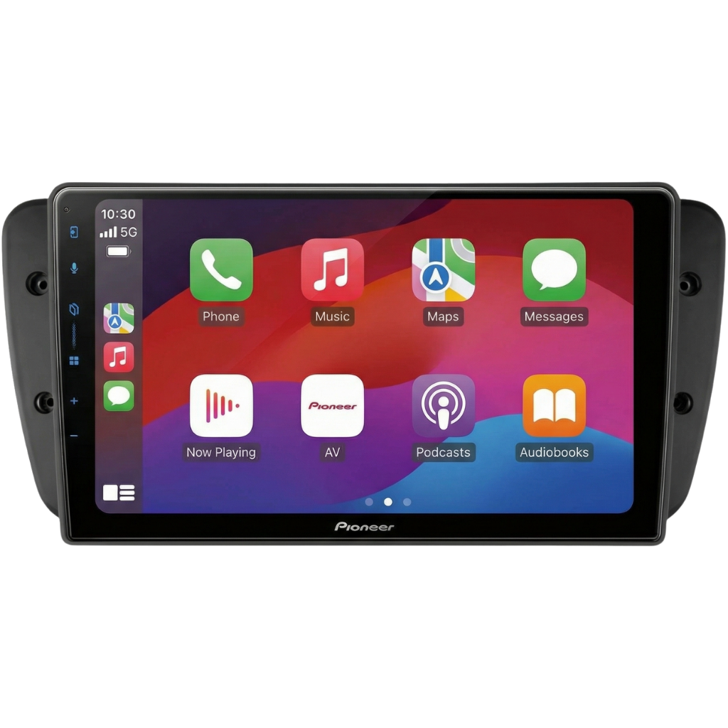 Pioneer SPH-F97BT 9" Multimedia Systeem voor Seat Ibiza (2008–2013), zwart, inclusief autospecifieke bekabeling en stuurwielinterface.