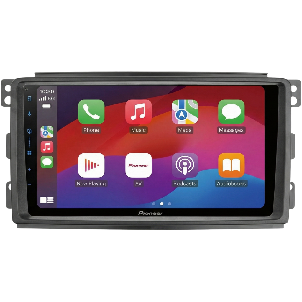 Complete installatiekit, inclusief het Pioneer SPH-PF97BT Multimedia Systeem en een voertuigspecifiek 9'' Multimedia Montageframe (Zwart), geschikt voor de Smart fortwo ('07-'10) en forfour ('04-'06), inclusief bekabeling en stuurwielinterface.