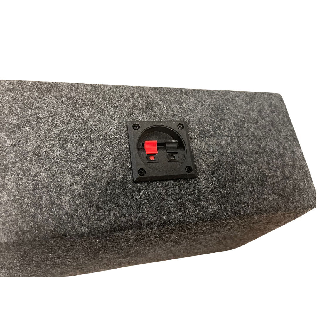 De behuizing is voorzien van handige terminal cups aan de achterzijde. U sluit de luidsprekerdraad aan de binnenzijde aan op uw speaker, en uw versterker of autoradio sluit u aan de buitenzijde van het kistje aan via de drukterminals.